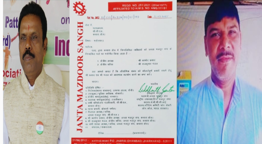 एस. पी. सक्सेना/बोकारो। श्रमिक संगठन जनता मजदूर संघ (जमसं) के महामंत्री सह केंद्रीय उपाध्यक्ष सिद्धार्थ गौतम ने बोकारो जिला के…