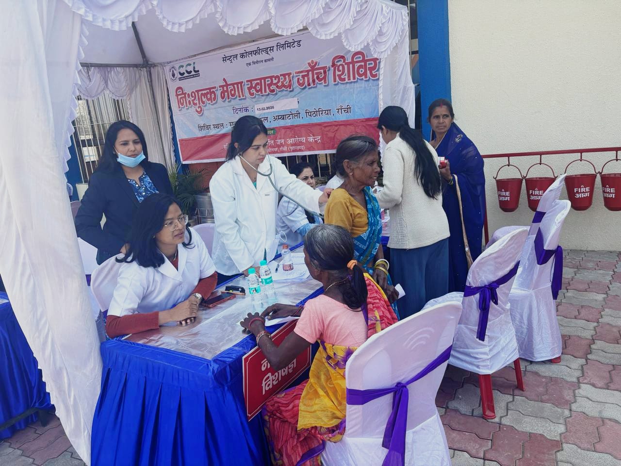 एस. पी. सक्सेना/रांची (झारखंड)। झारखंड की राजधानी रांची के गांधीनगर स्थित सेंट्रल कोलफील्ड्स लिमिटेड (सीसीएल) के जन आरोग्य केन्द्र (अस्पताल) द्वारा 13 फरवरी को मेगा स्वास्थ्य जाँच शिविर का आयोजन किया गया। उक्त आयोजन रांची के अम्बाटोली सृजन वैली स्कूल में आयोजित किया गया। जिसमें कुल 197 रोगियों का स्वास्थ्य जांच कर आवश्यक दवा दी गयी।