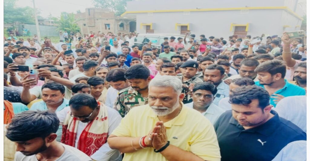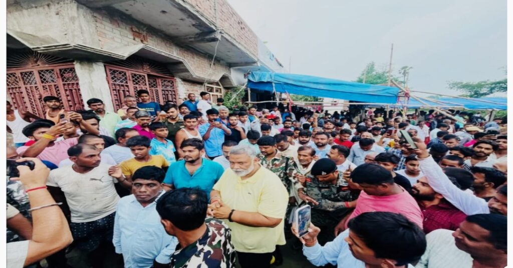 गंगोत्री प्रसाद सिंह/हाजीपुर (वैशाली)। पूर्णिया के सांसद राकेश रंजन उर्फ पप्पू यादव 17 जुलाई को वैशाली जिला के हद में गोरौल थाना क्षेत्र के पीरपुरा मथुरा गांव पहुंचे। एल एन कॉलेज की छात्रा संजना भारती की हत्या की जानकारी मिलने पर सांसद यादव मृतका के माता-पिता से मिलने उसके गांव पहुंचे।