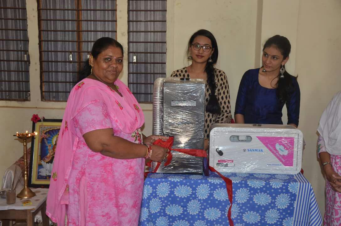 मुंबई की वृषा व्यास और हिनल जाजल ने ग्रामीण क्षेत्रों में भी शहर जैसी सुविधा मिले और स्वच्छता अभियान में जागरूकता लाने के लिए अभियान शुरू किया, जिसके तहत पैड वेडिंग मशीन और पैड के उपयोग के बाद पर्यावरण को नुकसान ना हो इसके लिए पैड को खत्म करने पैड इंसीनेटर मशीन लगाकर योजना का शुभारंभ किया। इस अवसर पर मोना थीबा, विद्यालय के मैनेजिंग ट्रस्टी जिगर जानी सहित स्कूल के प्राचार्य डी एस पटेल आदि उपस्थित थे। स्थानीय विधायक हितु कनोडिया की पत्नी मोना थीबा ने स्कूल की लड़कियों को मासिक धर्म के दौरान स्वच्छता की जरूरत के बारे में मार्गदर्शन दिया।