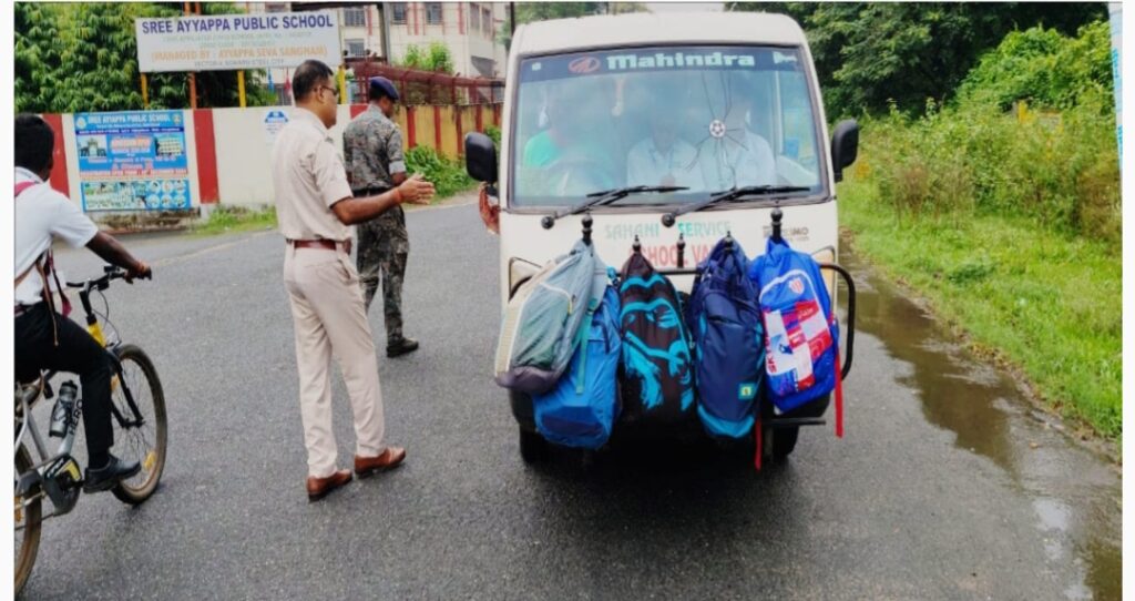 विद्यालयों के समीप चलाया गया ट्रैफिक नियम उल्लंघन पर विशेष अभियान