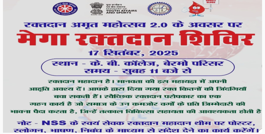 एस. पी. सक्सेना/बोकारो। बोकारो जिला के हद में जारंगडीह स्थित के. बी. कॉलेज बेरमो में आगामी 17 सितंबर को मेगा…