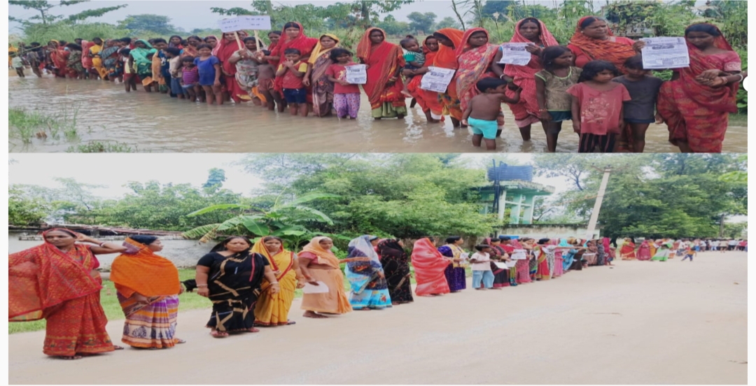 घंटों बाढ़ के पानी में खड़ी व्रतधारी महिलाओं ने रिंग बांध नहीं तो वोट नहीं का लगाया नारा अवध किशोर…