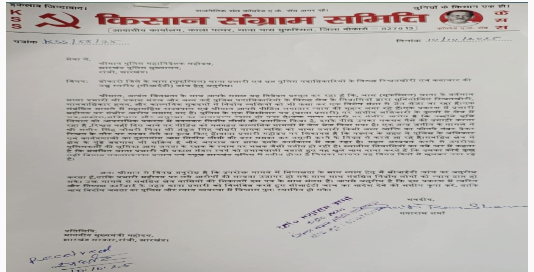 एस. पी. सक्सेना/बोकारो। बोकारो जिला के हद में चास मुफस्सिल थाना प्रभारी के खिलाफ किसान संग्राम समिति ने मोर्चा खोल…