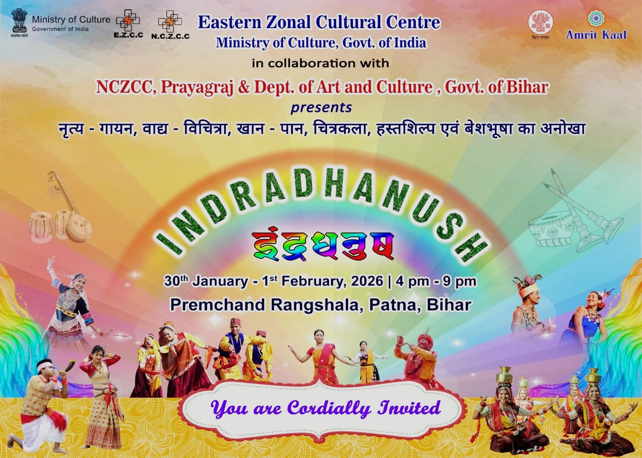 एस. पी. सक्सेना/पटना (बिहार)। बिहार की राजधानी पटना में आगामी 30 जनवरी से तीन दिवसीय सांस्कृतिक कार्यक्रम इंद्रधनुष का आयोजन…