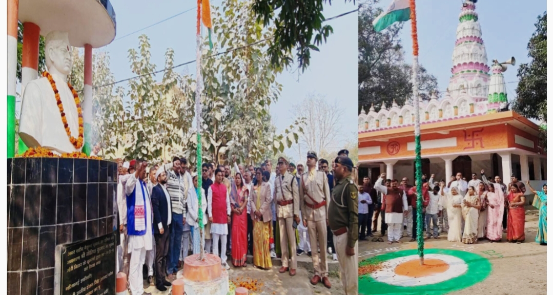 प्रहरी संवाददाता/हाजीपुर (वैशाली)। 77 में गणतंत्र दिवस के अवसर पर वैशाली जिला के लालगंज अंचल के जलालपुर गांव में अमर शहीद बैकुंठ शुक्ल और स्वतंत्रता सेनानी क्रांतिकारी शेरे बिहार जोगेंद्र शुक्ला के जन्मस्थली पर गणतंत्र दिवस समारोह मनाया गया।