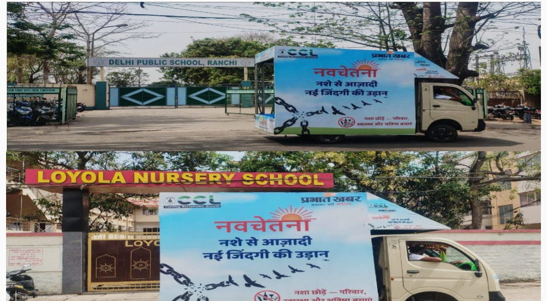 एस. पी. सक्सेना/रांची (झारखण्ड)। झारखंड की राजधानी रांची के स्कूलों तथा कॉलेजों के विद्यार्थियों में नशे के खिलाफ सीसीएल और स्थानीय एक अखबार की संयुक्त पहल नवचेतना के तहत रथ से जागरूकता चलाया जा रहा है।