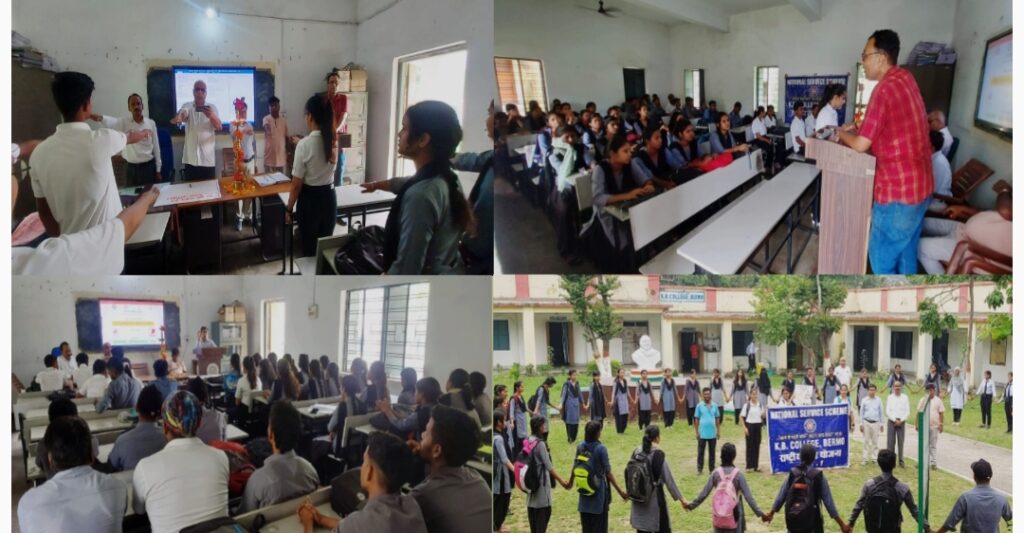 केबी कॉलेज राष्ट्रीय सेवा योजना (एनएसएस) इकाई एवं आईक्यूएसी के संयुक्त तत्वावधान में प्राचार्य लक्ष्मी नारायण की अध्यक्षता में निषिद्ध मादक पदार्थों एवं नशे के दुष्प्रभाव विषय पर सेमिनार सह जागरूकता कार्यशाला का आयोजन दीप प्रज्ज्वलित कर किया गया।