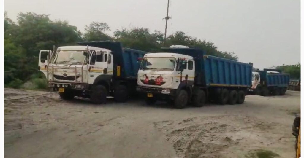 छाई ट्रांसपोर्टिंग बंद होने से पौंड में हाइवा डंपरो की लगी लम्बी कतार
