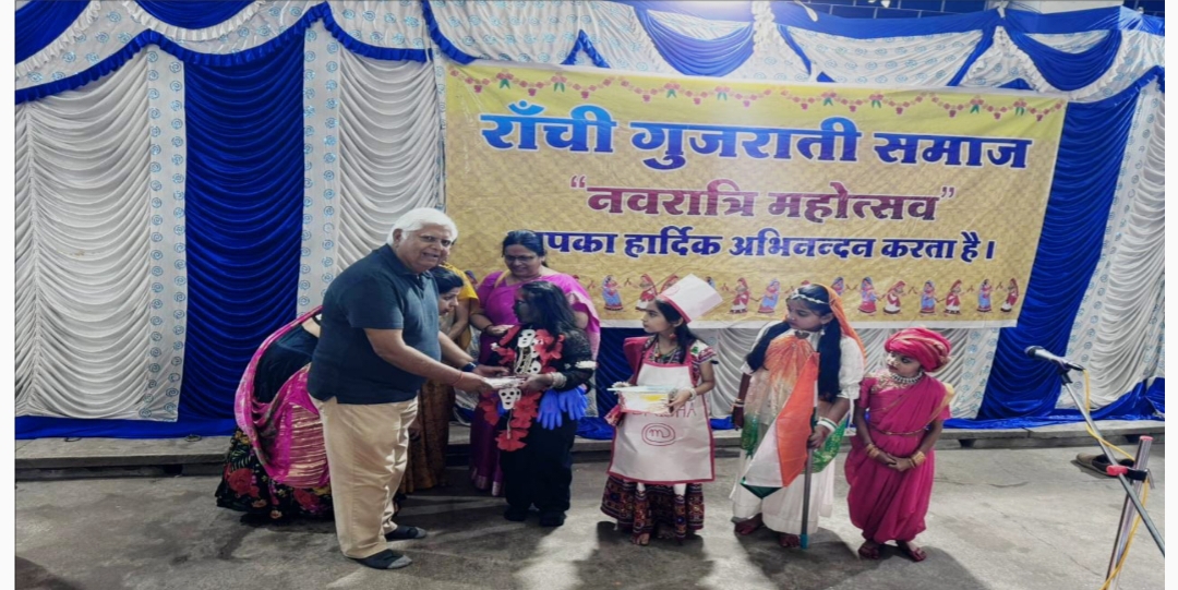 मौके पर उपस्थित गुजराती समाज रांची के आनंद भाई मानेक, दिलीप भाई वाढ़ेर, हरिश दोषी उर्फ राजू भाई, निलेश चौहान, हिमांशु मेहता, राजेश चौहान, ललित राठौर, जयंत परमार, मंगला बेन राठौड़, भावना चौहान, डॉ दीपक चौहान, बीनू ठक्कर, हितेश सोलंकी, सागर टांक आदि द्वारा डांडिया, गरबा तथा फैंसी ड्रेस कलाकारों को पुरस्कार देकर सम्मानित किया गया।