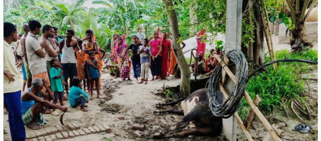 प्रहरी संवाददाता/समस्तीपुर (बिहार)। आंधी-पानी में पोल गिर गया, विभागीय मिस्त्री पहुंचकर तार काटकर पोल में बांध दिया, विभाग बिजली चालू कर दी, तार में सटने से गाय की मौत हो गई। घटना समस्तीपुर जिला के हद में ताजपुर नगर परिषद क्षेत्र के मोतीपुर वार्ड नंबर 27 का है।