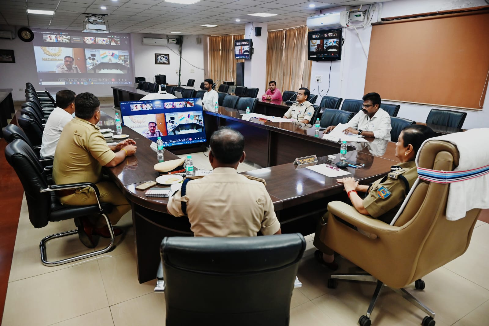 एस. पी. सक्सेना/रांची (झारखंड)। ईद, सरहुल एवं रामनवमी पर्व के मद्देनजर राज्य की सुरक्षा एवं विधि-व्यवस्था को लेकर 17 मार्च को झारखंड की राजधानी रांची स्थित पुलिस मुख्यालय सभागार में बैठक की गयी। अध्यक्षता राज्य के पुलिस महानिदेशक (डीजीपी) तदाशा मिश्र ने की। बैठक में अपर पुलिस महानिदेशक (अभियान) टी. कंडासामी, पुलिस महानिरीक्षक अभियान डॉ माईकलराज एस., पुलिस महानिरीक्षक (प्रोविजन) पटेल मूयर कनैयालाल, प्रक्षेत्रीय पुलिस महानिरीक्षक (बोकारो) सुनिल भास्कर, पुलिस अधीक्षक (विशेष शाखा) दीपक पांडेय भौतिक रूप से एवं वीडियो कॉन्फ्रेंसिंग के माध्यम से सभी प्रक्षेत्रीय पुलिस महानिरीक्षक, सभी क्षेत्रीय पुलिस उप-महानिरीक्षक, सभी वरीय पुलिस अधीक्षक एवं पुलिस अधीक्षकों ने भाग लिया।
