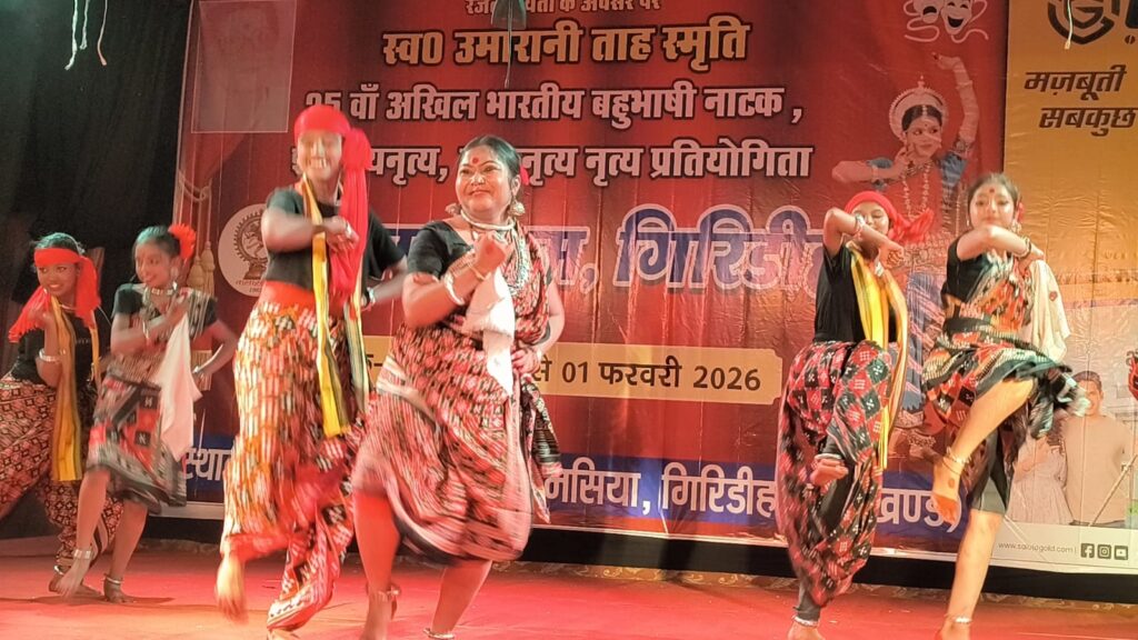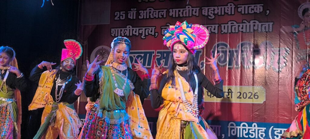 गिरिडीह : कला संगम के तत्वावधान में सबेरा सिनेमा हॉल में आयोजित चार दिवसीय स्व. उमा रानी ताह स्मृति 25वीं अखिल भारतीय बहुभाषी नाटक, शास्त्रीय नृत्य, लोकनृत्य प्रतियोगिता के दूसरे दिन शास्त्रीय नृत्य एवं लोक नृत्य की धूम मची रही। नाटकों ने एक ओर जहां दर्शकों को गुदगुदाया तो दूसरी ओर उनके दिलों को झकझोरा भी।