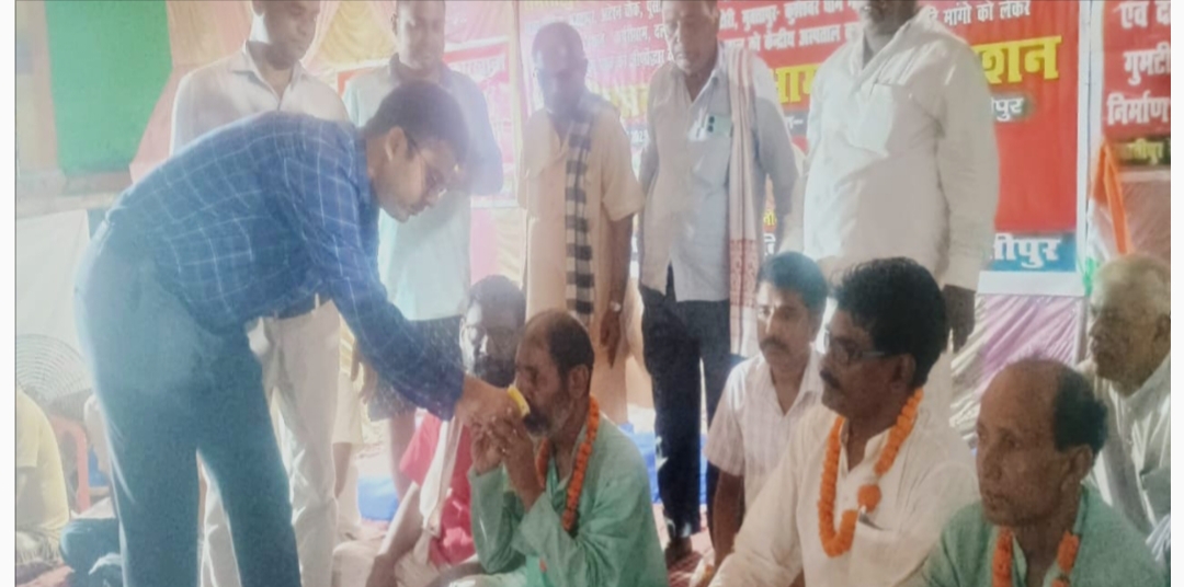 एस. पी. सक्सेना/समस्तीपुर (बिहार)। समस्तीपुर रेल कारखाना में पीओएच डब्बा निर्माण कार्य शुरू करने, भोला टाकीज-मुक्तापुर-अटेरन चौक, दलसिंहसराय, पूसारोड रेल गुमटी पर औवरब्रीज निर्माण कार्य शुरू करने, कर्पूरीग्राम-ताजपुर-भगवानपुर, केबल स्थान-कर्पूरीग्राम एवं दलसिंहसराय-पटोरी, मुक्तापुर-कुशेश्वर धाम नई रेल लाईन योजना को मंजूरी देने, माधुरी चौक स्थित चिल्ड्रेन पार्क का जीर्णोद्धार करने, रेल अस्पताल को केंद्रीय अस्पताल का दर्जा देने आदि मांगों को लेकर रेल विस्तार एवं विकास मंच के बैनर तले रेल कारखाना पर उपेंद्र राय, रामविनोद पासवान एवं अशोक राय द्वारा बीते 22 सितंबर से शुरू अनिश्चितकालीन आमरण अनशन बीते 23 सितंबर को समाप्त हो गया।