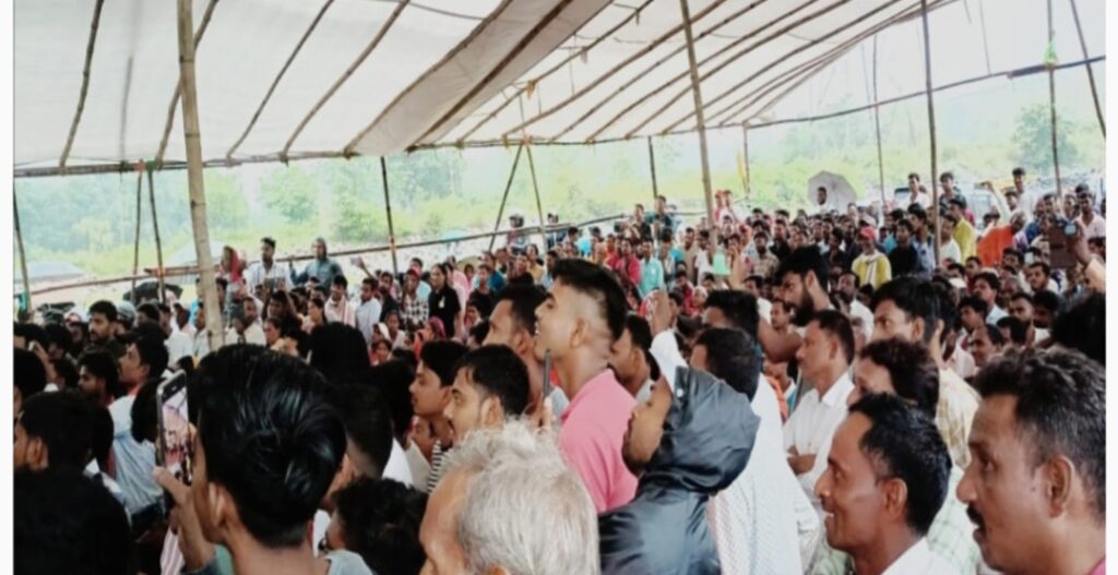 ममता सिन्हा/तेनुघाट (बोकारो)। डुमरी विधायक जयराम महतो अपने पुर्व निर्धारित कार्यक्रम के तहत 15 जुलाई को बोकारो जिला के हद में तेनुघाट पहुंचकर सभा की। खतियान आधारित सभा में बड़ी संख्या में ग्रामीण रहिवासी शामिल हुए।