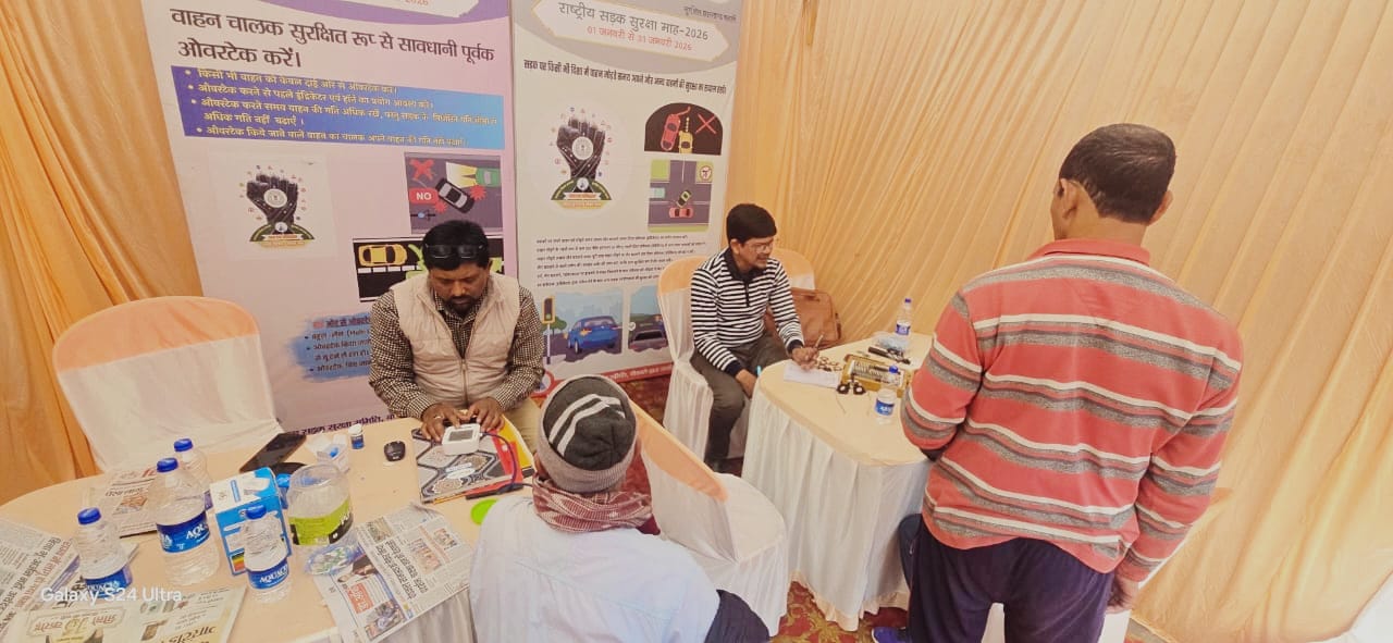 शिविर में उपस्थित चिकित्सक ने जानकारी देते हुए बताया कि राष्ट्रीय सड़क सुरक्षा माह के तहत यह नेत्र जांच व अन्य स्वास्थ्य जांच शिविर आयोजित किया गया है। इस शिविर में कुल 600 बस चालकों सहित अन्य चालकों की नेत्र व् स्वास्थ्य जांच की गई। इस कार्य में प्रह्लाद कुमार वर्मा ने सहयोग किया।