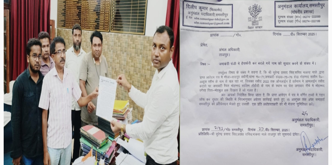 एस. पी. सक्सेना/समस्तीपुर (बिहार)। बीते 24 सितंबर से समस्तीपुर जिला के हद में ताजपुर अंचल पर जारी आमरण अनशन बीते 27 सितंबर की देर रात्रि जांच कर कार्रवाई के एसडीओ के पत्र के बाद समाप्त कर दिया गया।