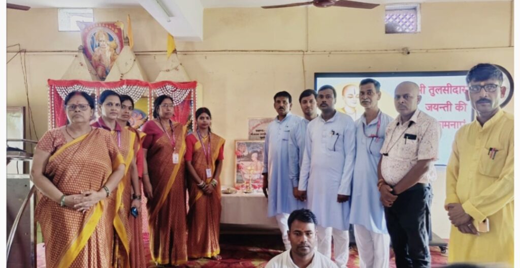 विद्यालय के आचार्य किशोर कुमार ने तुलसीदास द्वारा रचित रामचरितमानस, विनय पत्रिका, कवितावली, गीतावली, कृष्ण गीतावली, दोहावली, बरवै रामायण, रामलला नहछू, पार्वती मंगल, जानकी मंगल और वैराग्य संदीपनी के विषय में विस्तार से बताया। विद्यालय के सचिव अमित कुमार सिंह ने तुलसीदास के जीवन की एक महत्वपूर्ण घटना का वर्णन किया। उन्होंने बताया कि जब गोस्वामी तुलसीदास का विवाह रत्नावली से हुआ था।
