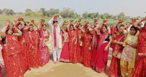 खैराचातर के हरि मंदिर में राधा कृष्ण प्रतिमा स्थापित करने को ले भव्य कलश यात्रा
