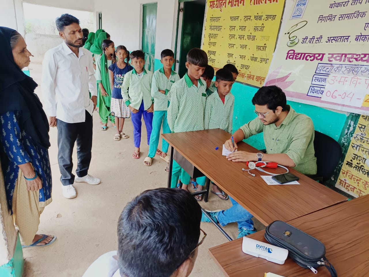 डीवीसी सीएसआर द्वारा मध्य विद्यालय परसाबेड़ा में स्वास्थ्य जांच शिविर