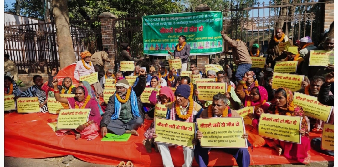 एस. पी. सक्सेना/रांची (झारखंड)। बोकारो जिला के हद में सीसीएल कथारा क्षेत्र के स्वांग वाशरी क्लिनिंग कार्य से बैठाये गये आवार्डी मजदूरों द्वारा नियोजन की मांग को लेकर 5 दिसंबर को झारखंड की राजधानी रांची के सीसीएल मुख्यालय दरभंगा हाउस के समक्ष भूख हड़ताल आंदोलन शुरु किया गया। भूख हड़ताल आंदोलन में 5 दिसंबर की सुबह लगभग ग्यारह बजे 60 से अधिक अवार्डी मजदूर सीसीएल मुख्यालय दरभंगा हाउस पहुंचकर अपने हाथों में नारा लिखे बैनर, पोस्टर व् फेस्टून लेकर सीसीएल प्रबंधन के खिलाफ जमकर नारेबाजी करते हुए प्रदर्शन किया। नेतृत्व अवार्डी मजदूर बुटकी बाई तथा डिवीजन सिंह कर रहे थे।