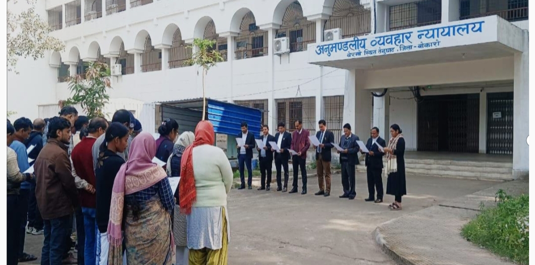 ममता सिन्हा/तेनुघाट (बोकारो)। संविधान दिवस के अवसर पर बीते 26 नवंबर को बोकारो जिला के हद में तेनुघाट व्यवहार न्यायालय परिसर में न्यायिक पदाधिकारियों ने संविधान की शपथ ली।