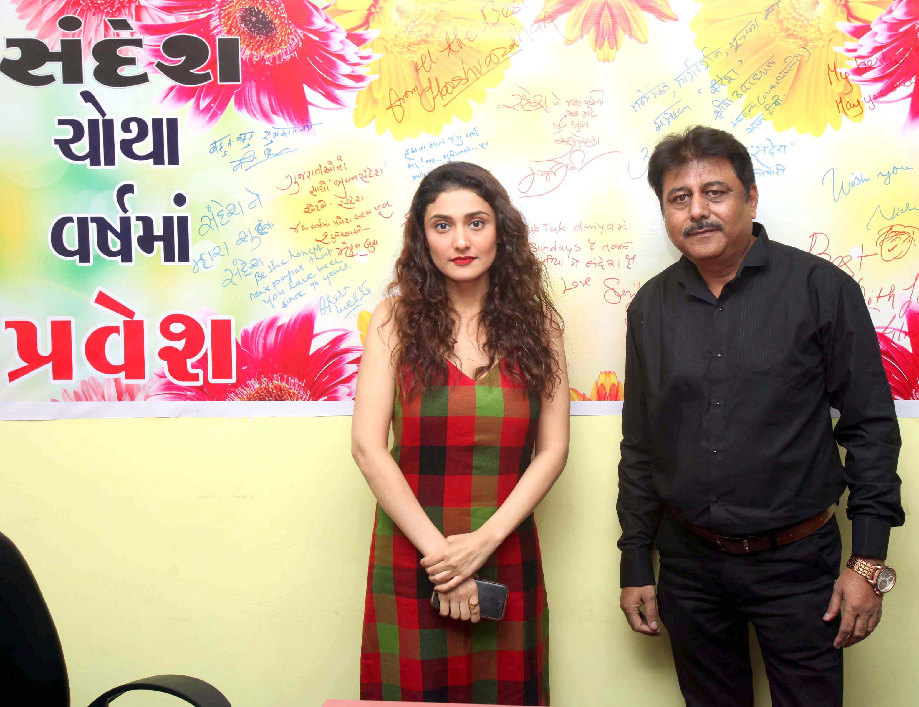 आयुष्मान खुराना, कीर्ति सेनन, राजकुमार राव, रागिनी खन्ना, शादी विथ जुगाड़ फिल्म के कलाकार – एकता जैन, श्री राजपूत, हर्षवर्धन जोषी, करेंन राजपूत, सिंगर संचिति सकट, टीवी स्टार अपरा मेहता, टॉयलेट एक प्रेमकथा के संगीतकार विक्की प्रसाद, मनोज जोषी, सिंगर रिमेश राजा, ब्राइट के योगेश लखानी और सुनील पाल गुजराती पेपर संदेश को मुंबई में चौथे साल में प्रवेश करने के लिए शुभकामनाएं देने ऑफिस आए।