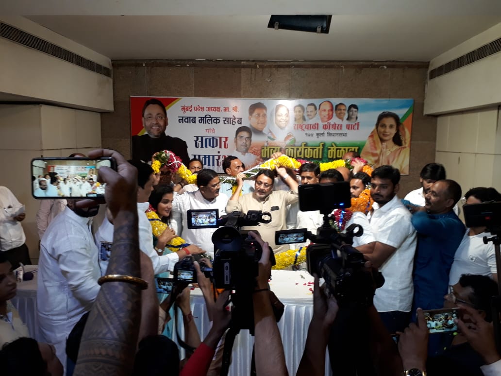 मुश्ताक/ मुंबई। राष्ट्रवादी कांग्रेस पार्टी (NCP) के कार्यकर्ता सम्मेलन में मुंबई प्रदेश अध्यक्ष नवाब मलिक (Nawab Malik) ने कहा कि भाजपा (BJP) के झूठे वादों की पोल खुल चुकी है। उन्होंने केंद्रीय गृहमंत्री अमित शाह पर निशाना साधते हुए कहा कि ईवीएम की बदौलत जीतने वालों को इस बार के महाराष्ट्र विधानसभा चुनाव में जनता सबक सिखाएगी। झूठ पर झूठ बोलने व जनता को गुमराह करने वाली भाजपा के बहकावे में अब जनता आने वाली नहीं है। यह बात मलिक ने कुर्ला पूर्व के बंटर भवन में स्थित स्वामी मुक्तानंद सभागृह में आयोजित सम्मेलन में कही।