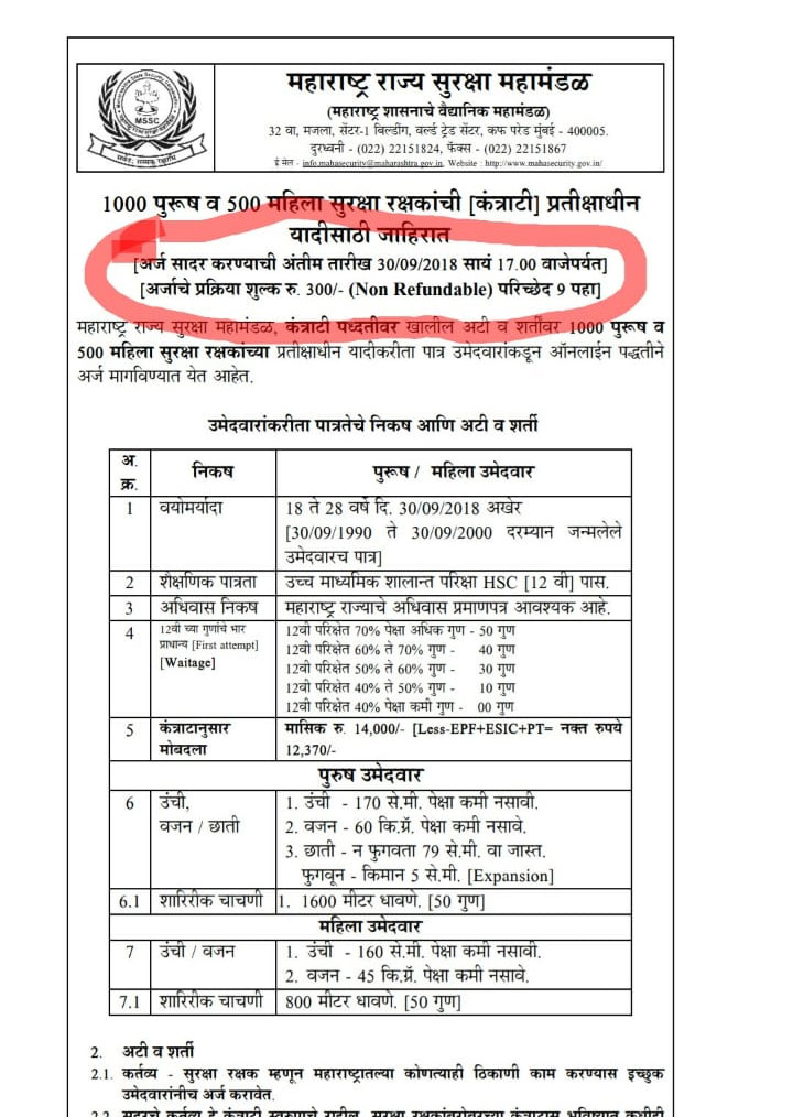 मिली जानकारी के अनुसार महाराष्ट्र राज्य सुरक्षा महामंडल (एम एस एस सी) द्वारा संचालित महाराष्ट्र सिक्योरिटी फोर्स (एम एस एफ) को सीआईएसएफ की तर्ज पर बनाया गया। ताकि राज्य के शिक्षित व बेरोजगारों को रोजगार मुहैया कराया जा सके। इसके तहत वर्ष 2010 में महामंडल द्वारा एमएसएफ की स्थापना की गई। इसके बाद महामंडल द्वारा राज्य के विभिन्न सरकारी व गैर सरकारी संस्थानों में एमएसएफ के जवानों को सुरक्षा के लिए तैनात किया जाने लगा।