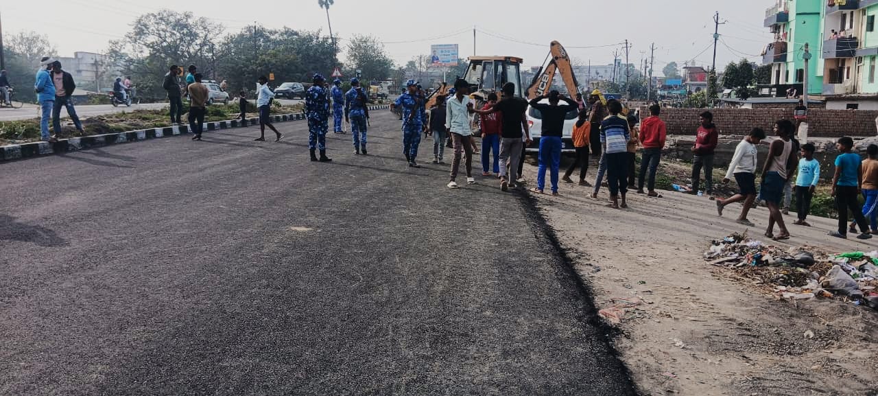 अधिग्रहीत भूमि के भू स्वामियों को नोटिस देकर भूमि क़ो खाली करने के लिए निर्देशित किया गया था, लेकिन आदेश के बावजूद भूमि स्वामी अपनी भूमि को खाली नहीं किया जिसके कारण उक्त भूमि पर बुलडोजर चलवा कर अतिक्रमण स्थलों क़ो मुक्त कराया गया है। उन्होंने बताया कि एनएच -19 के समीप 60 से 70 फीट चौड़ी भूमि है जिसमें दोनों छोर पर लगभग 20 फीट भूमि अतिक्रमण किया गया है जिसे अतिक्रमण मुक्त कराया जा रहा है।