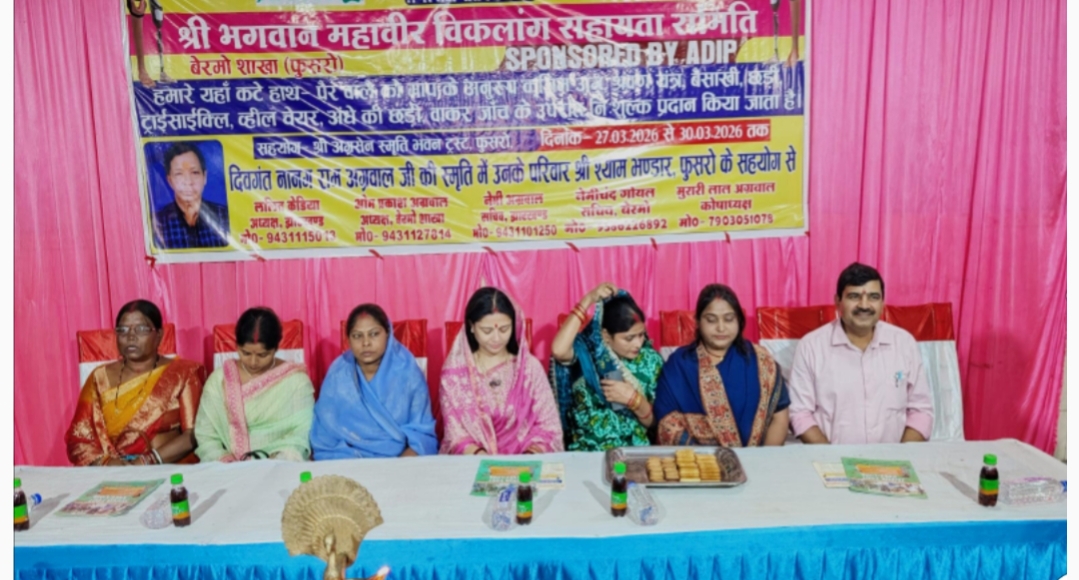 एन. के. सिंह/फुसरो (बोकारो)। बोकारो जिला के हद में फुसरो के अग्रसेन भवन में दिव्यांग जनों और वद्धों के लिए चार दिवसीय निःशुल्क सहायता एवं कत्रिम अंग प्रत्यारोपण शिविर का आयोजन किया जा रहा है। शिविर के दूसरे दिन 28 मार्च को भगवान महावीर विकलांग सहायता समिति जयपुर के सहयोग से स्व.नानक राम की स्मृति में आयोजित इस शिविर का उद्धाटन कांग्रेस नेत्री अनुपमा सिंह, नप अध्यक्ष निर्मला देवी, उपाध्यक्ष रेणु देवी, बेरमो बीडीओ मुकेश कुमार ने संयक्त रूप से दीप प्रज्वलित कर किया।