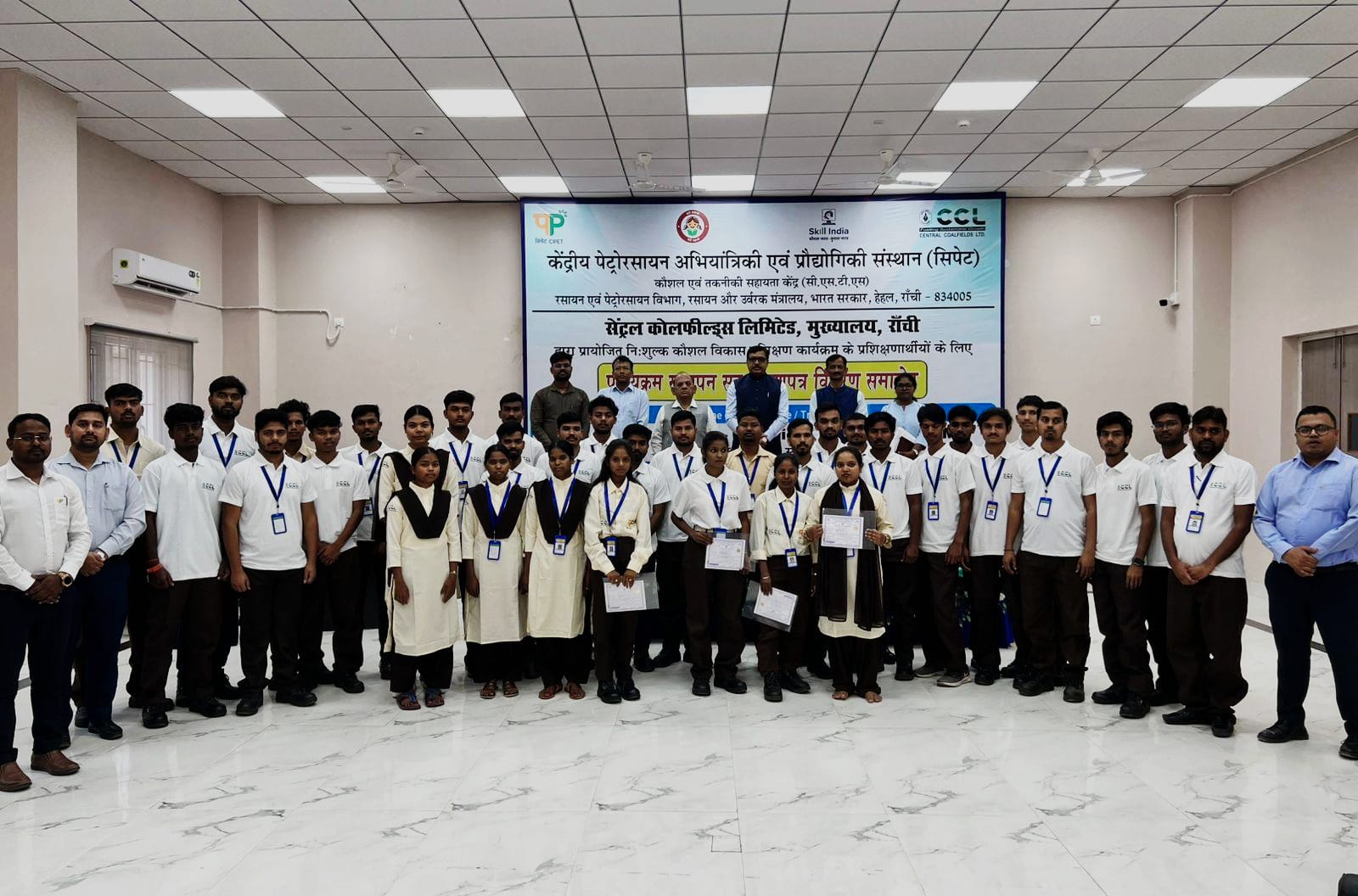 एस. पी. सक्सेना/रांची (झारखंड)। स्थानीय युवाओं के कौशल विकास और रोजगार क्षमता को बढ़ावा देने की दिशा में एक महत्वपूर्ण पहल के तहत सेंट्रल कोलफीड्स लिमिटेड (सीसीएल) ने अपनी कॉर्पोरेट सामाजिक उत्तरदायित्व (सीएसआर) के पहल से सेंट्रल इंस्टिट्यूट ऑफ पेट्रोकेमिकल्स इंजीनियरिंग एंड टेक्नोलॉजी (सीआईपीइटी) रांची के सहयोग से संचालित कौशल विकास प्रशिक्षण कार्यक्रम सफलतापूर्वक सम्पन्न हो गया। इस अवसर पर 25 मार्च को प्रमाण-पत्र वितरण समारोह का आयोजन किया गया, जिसमें 5वें बैच के प्रशिक्षण के सफल समापन की औपचारिक घोषणा की गई।