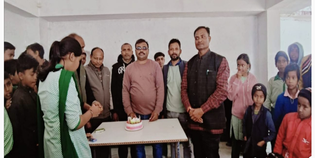 उत्क्रमित मध्य विद्यालय बारहमसीया में धूमधाम से मनाया गया शिक्षक का जन्मदिन