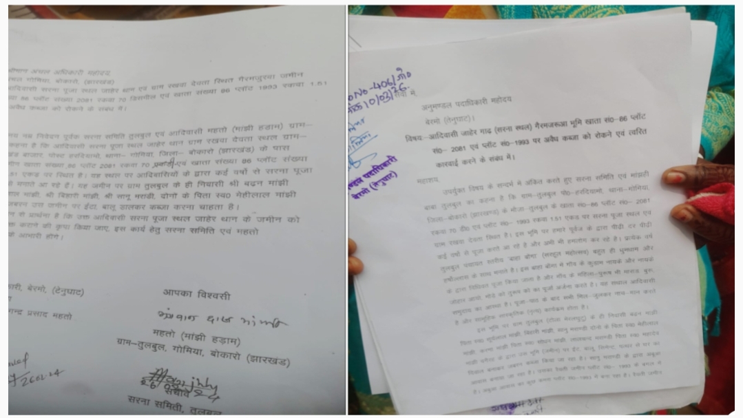 प्रहरी संवाददाता (बोकारो)। बोकारो जिला के हद में गोमिया प्रखंड के तुलबुल में सरना स्थल को लेकर विवाद उत्पन्न विवाद को लेकर दो आदिवासी समुदाय में आपस में तनातनी देखी जा रही है। इसे लेकर दर्जनों आदिवासी महिला पुरुष 10 मार्च को बेरमो अनुमंडल पदाधिकारी (एसडीओ) से हस्तक्षेप की मांग की है।
