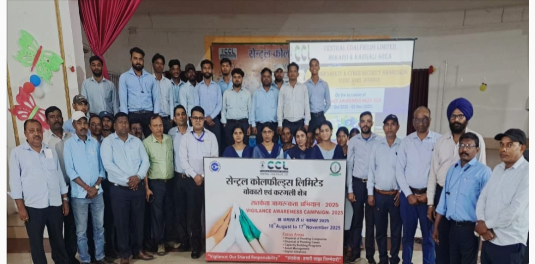 एन. के. सिंह/फुसरो (बोकारो)। बोकारो जिला के हद में सीसीएल बीएंडके क्षेत्रीय मुख्यालय करगली क्षेत्र 29 अक्टूबर को सतर्कता जागरूकता सप्ताह के तहत साइबर अपराधों से बचाव के लिए जागरूकता कार्यक्रम आयोजित किया गया।