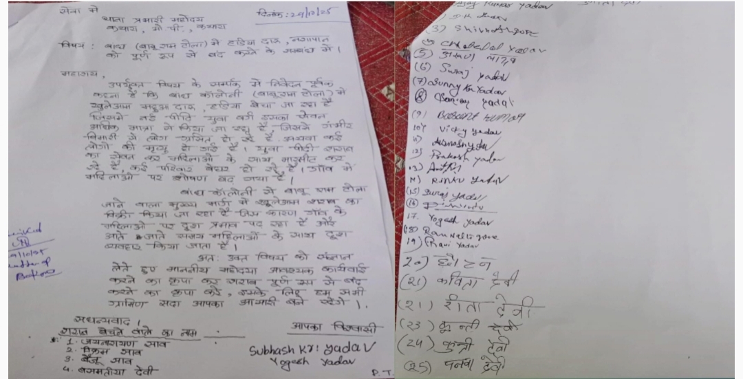 शराब के नशे में पुरुष घर लौटने के बाद घरेलू कलह करते हैं और कई बार रास्ते में तथा घरों में महिलाओं के साथ दुर्व्यवहार तक की घटनाएँ हो जाती हैं। संयुक्त आवेदन करनेवालों में पंचायत क्षेत्र रहिवासी सुभाष कुमार यादव, योगेश यादव, अजय यादव, शिवनाथ गोप, छोटेलाल गोप, अरुण यादव, सुनीता देवी, सुरज यादव, सन्नी यादव, बसंत कुमार, विजय यादव, प्रकाश यादव, रिंकू यादव, दिनेश यादव, कविता देवी, रीता देवी, कुन्ती देवी, पनवा देवी सहित दो दर्जन से अधिक ग्रामीणों ने हस्ताक्षर है।