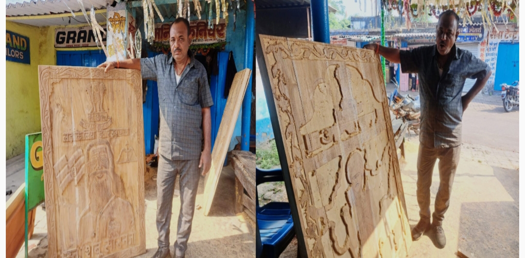 बेहतरीन लकड़ी पर भगवान बिरसा, दिशोम गुरू व् कल्पना सोरेन की नक्काशी